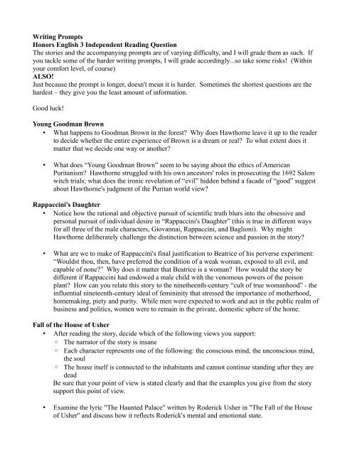 Young goodman brown pdf italiano. The plot of the story is set in 17 th century puritan new england, a common setting for author’s work, and addresses the puritan concept that the humanity is in the state of depravity, but the god has destined some people for unconditional. Goodman has not yet found his place as an adult member of the community of salem, and is still in a state. Young goodman brown came forth at sunset into the street at salem village;
